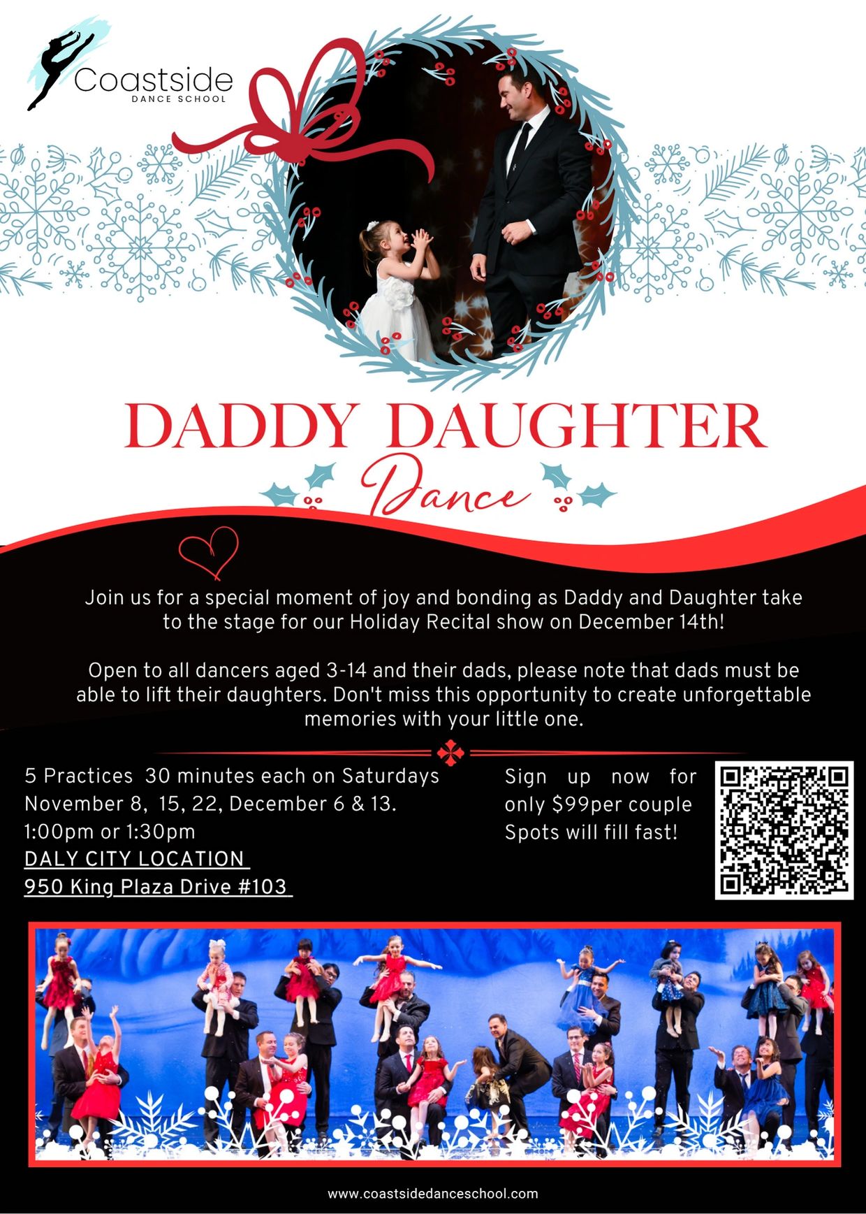 Join us for a special moment of joy and bonding as Daddy and Daughter take to the stage for our Holiday Recital show on December 14th!